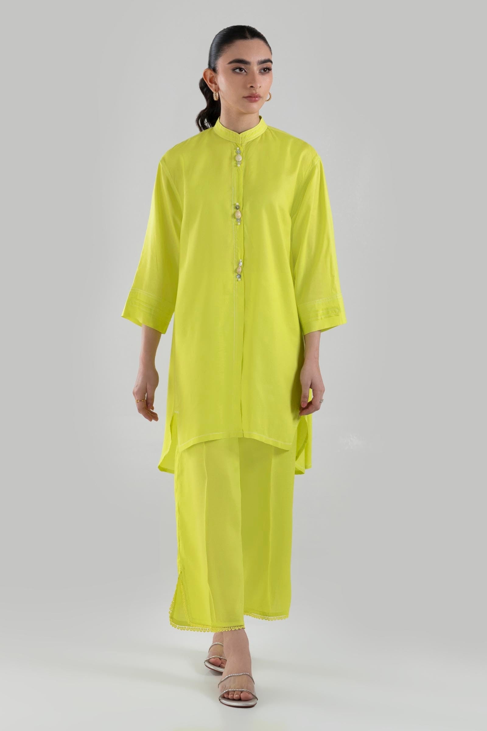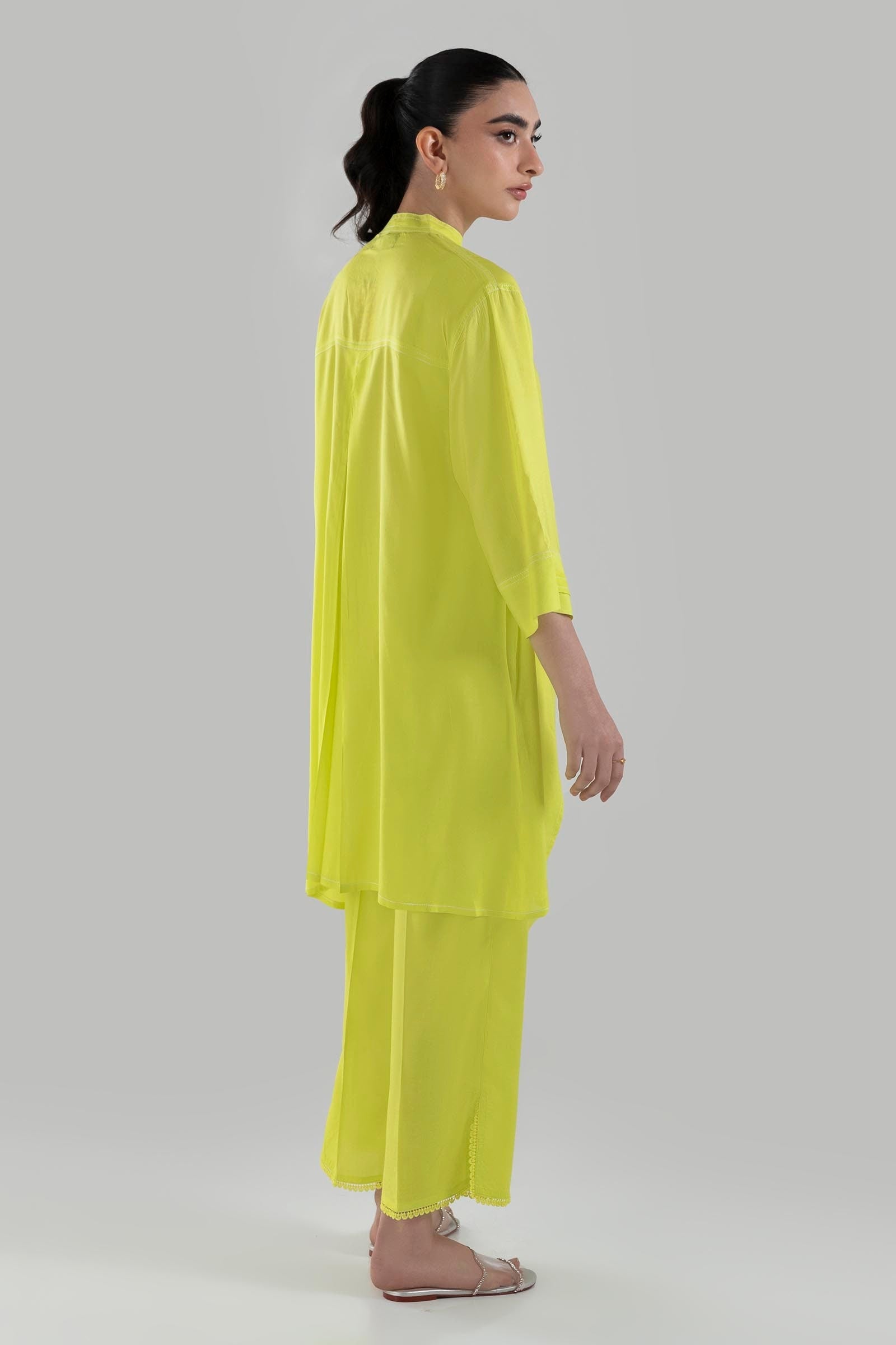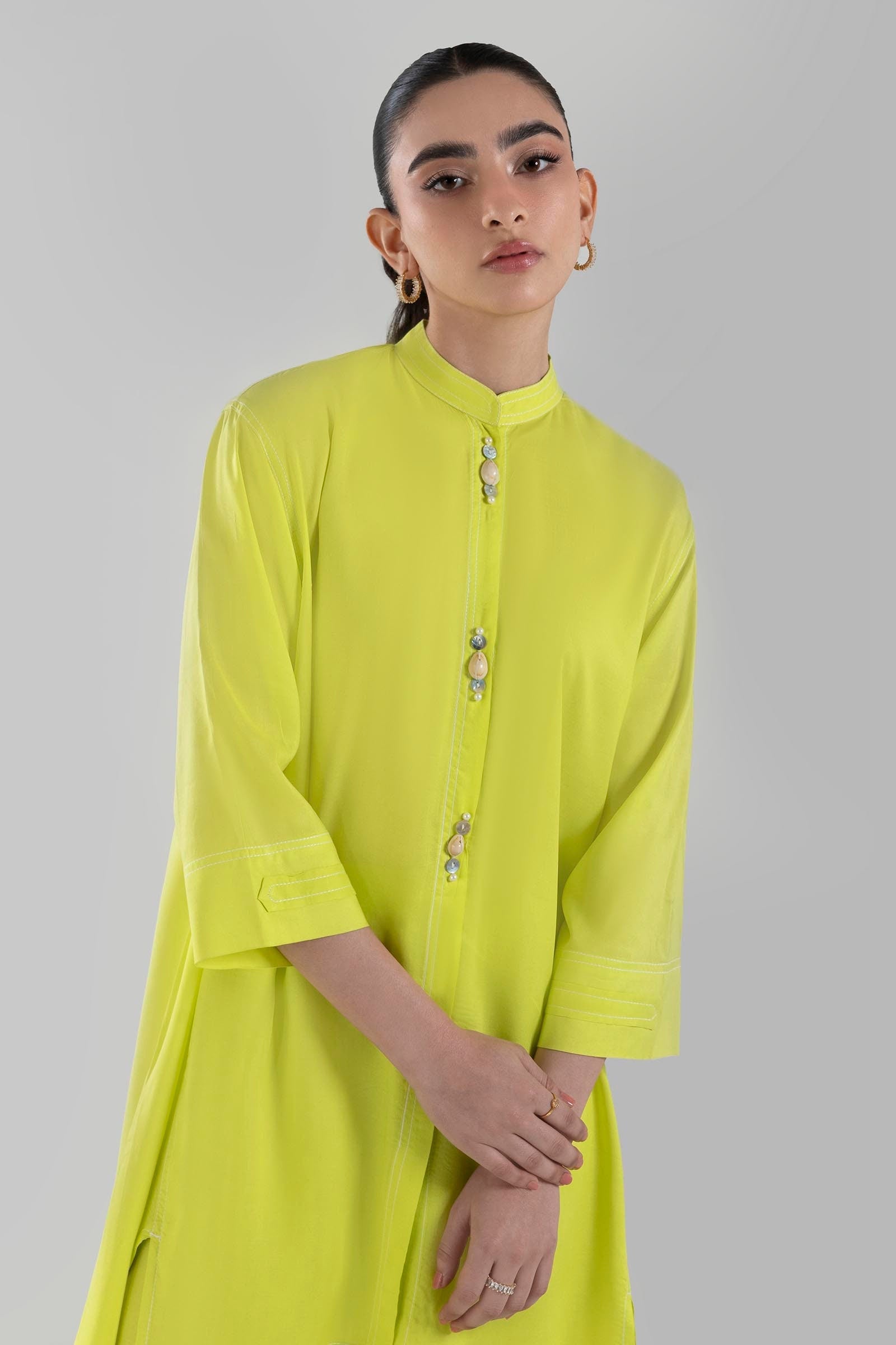 Stitched Neon Green Printed Shirt