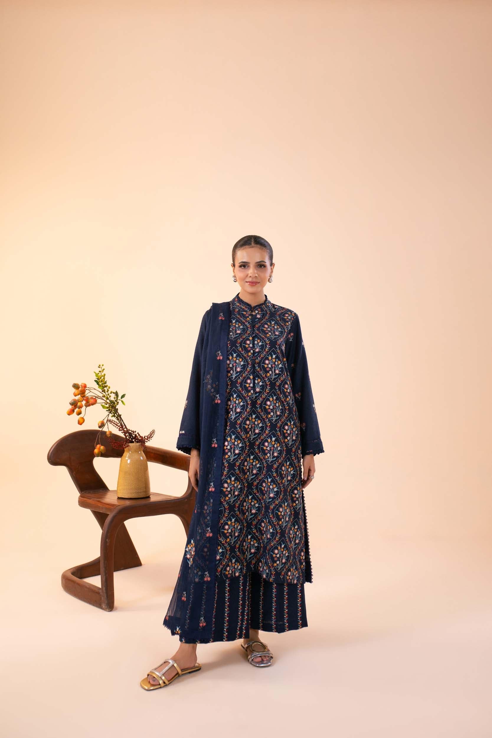 Stitched Embroidered Khaddar Shirt + Shalwar
