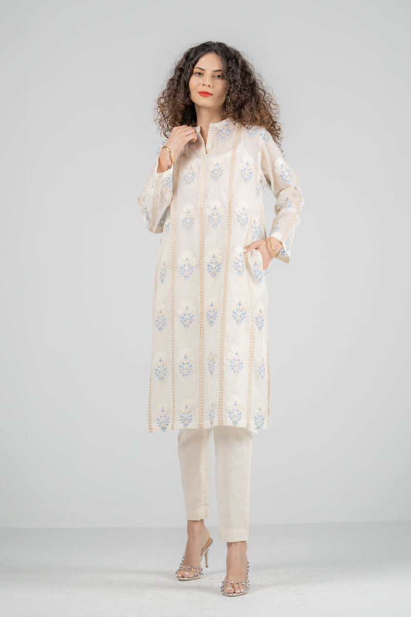Stitched Chambrey Embroidered Shirt