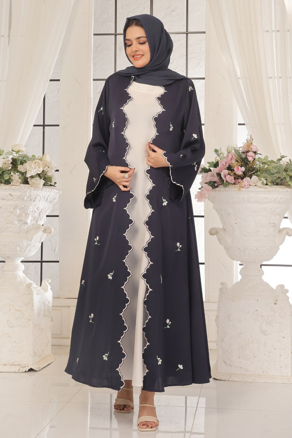 Wave Blue Embroidered Abaya