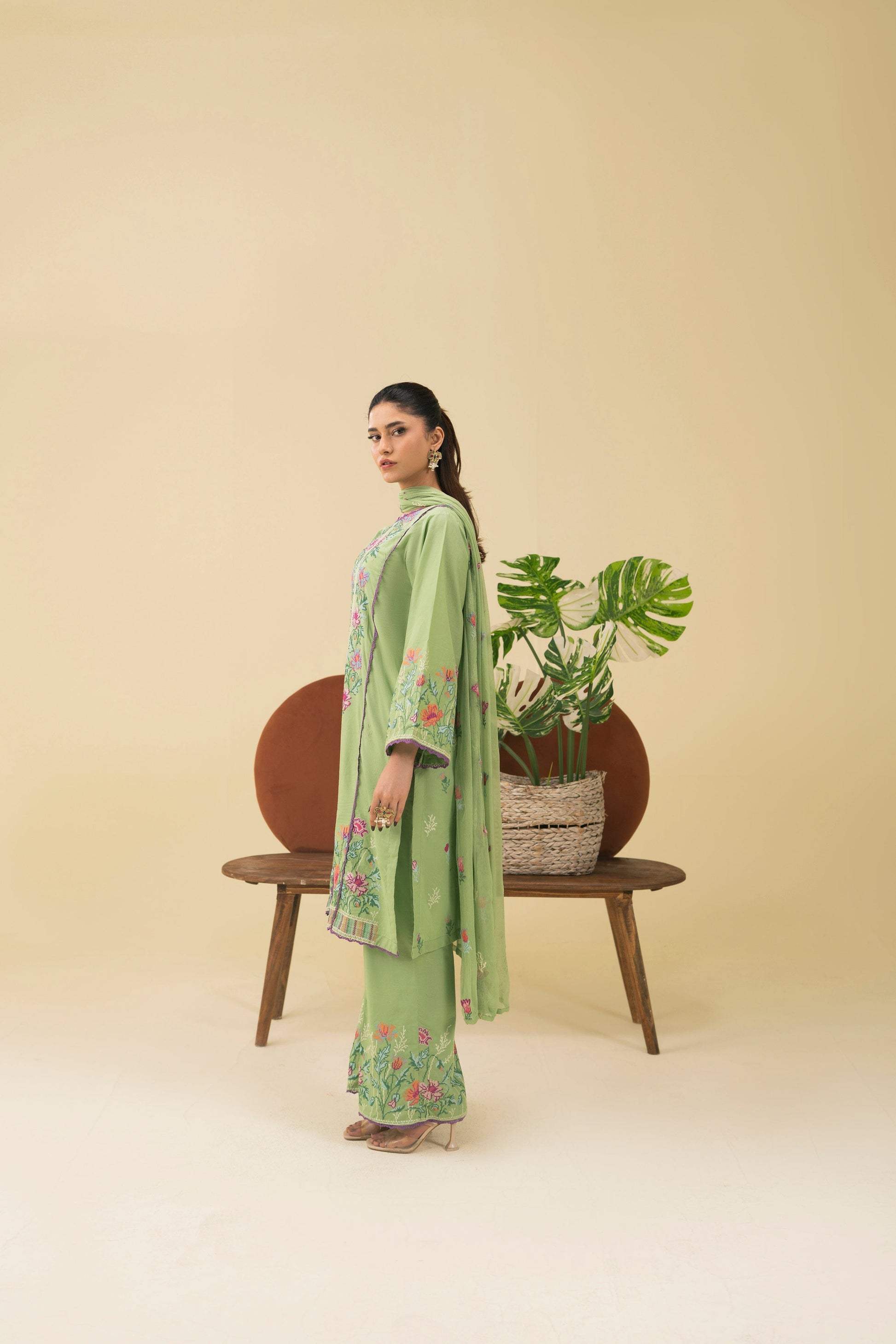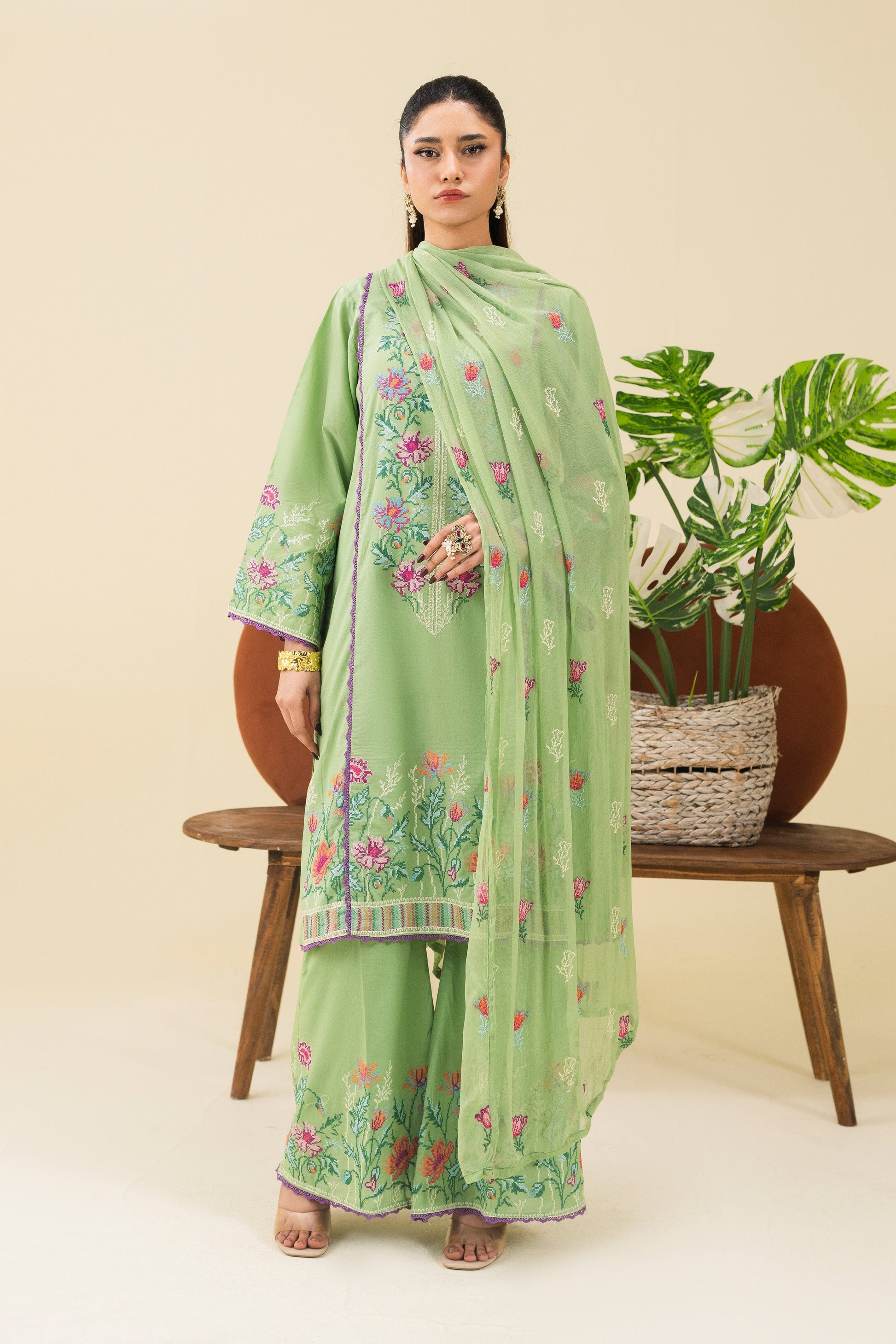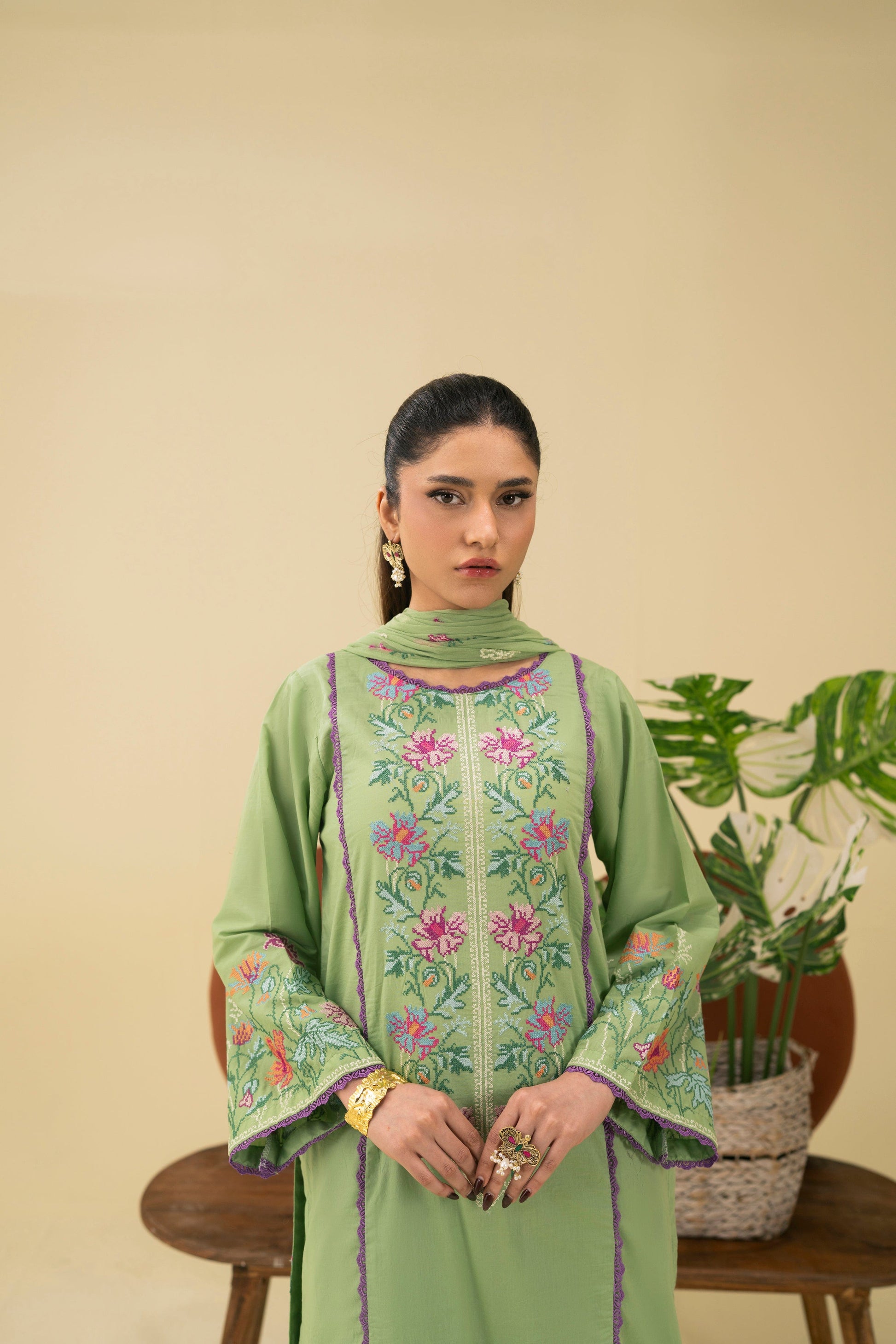 -Embroidered Pure Bamber Crinkle Dupatta