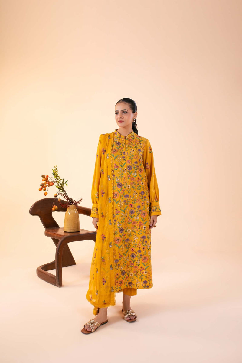 -Embroidered Pure Bamber Crinkle Dupatta