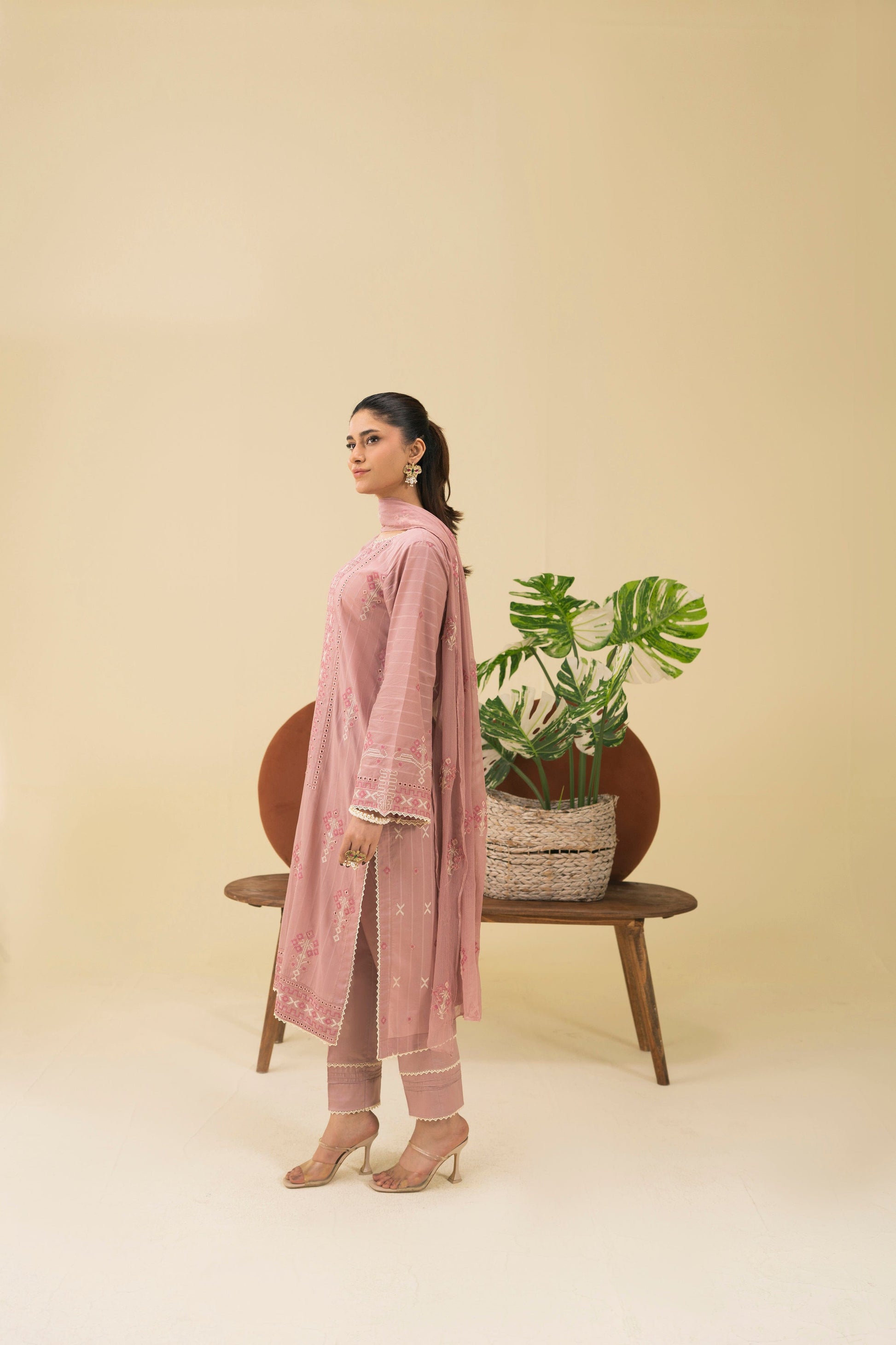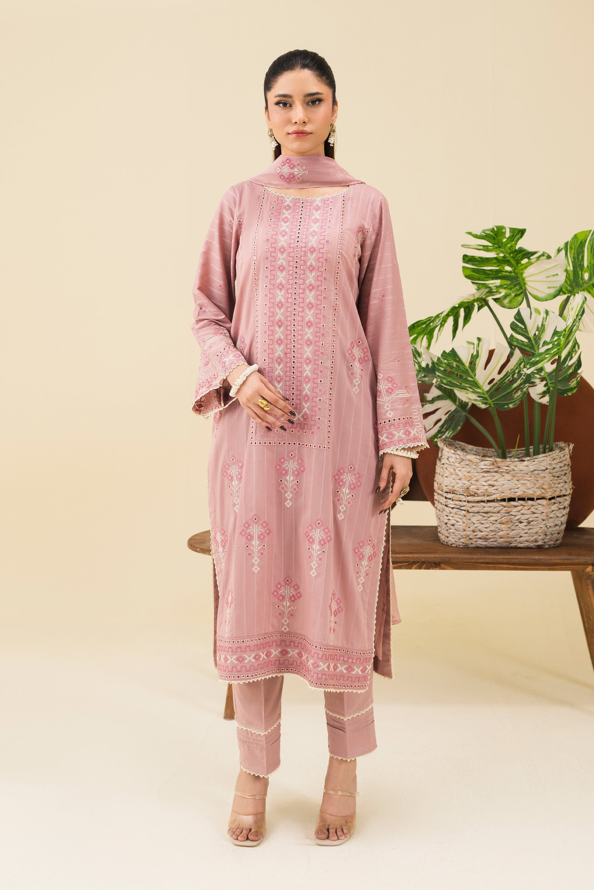 -Embroidered Self Crinkle Dupatta