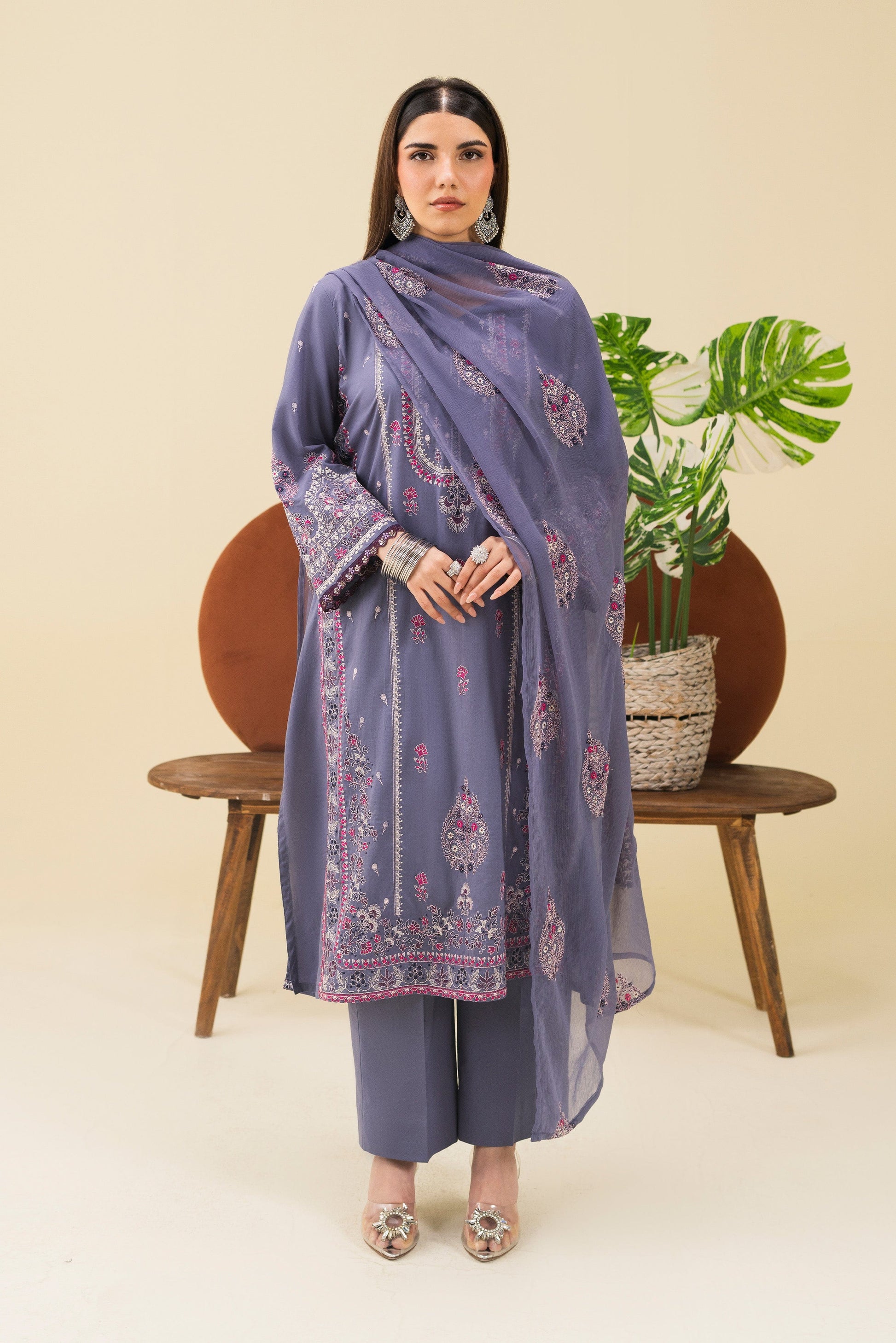-Embroidered Self Crinkle Dupatta