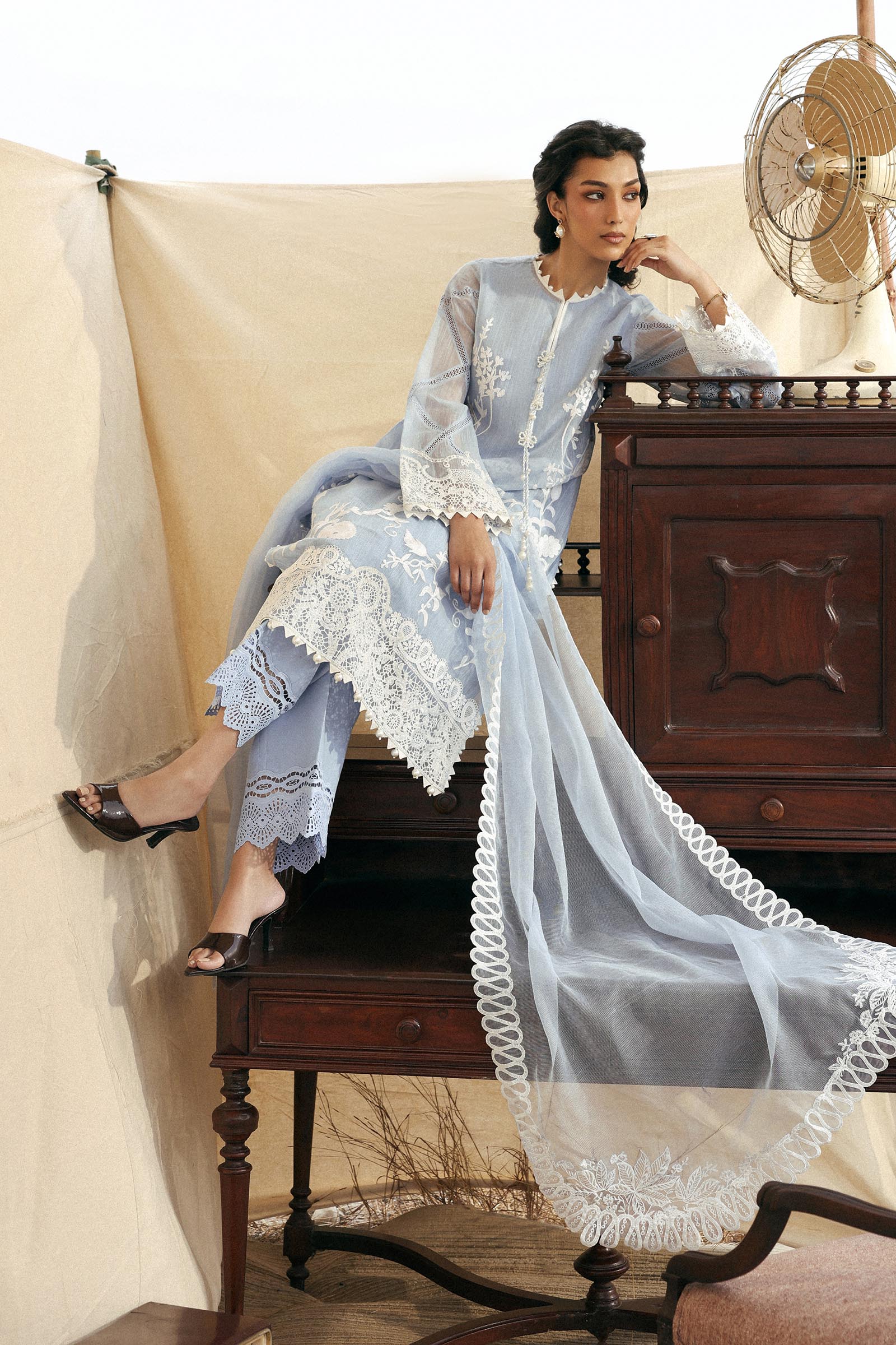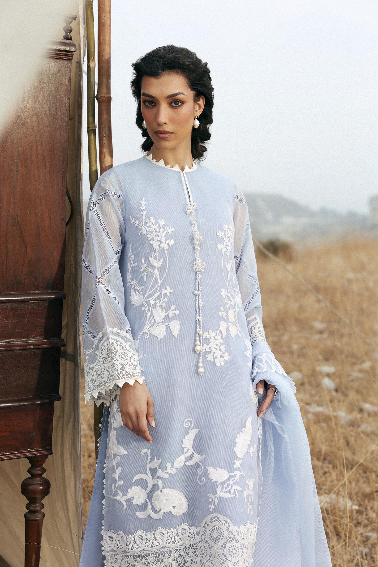 | 03-Embroidered Front Kali On Woven Net | 1.15 Meter |