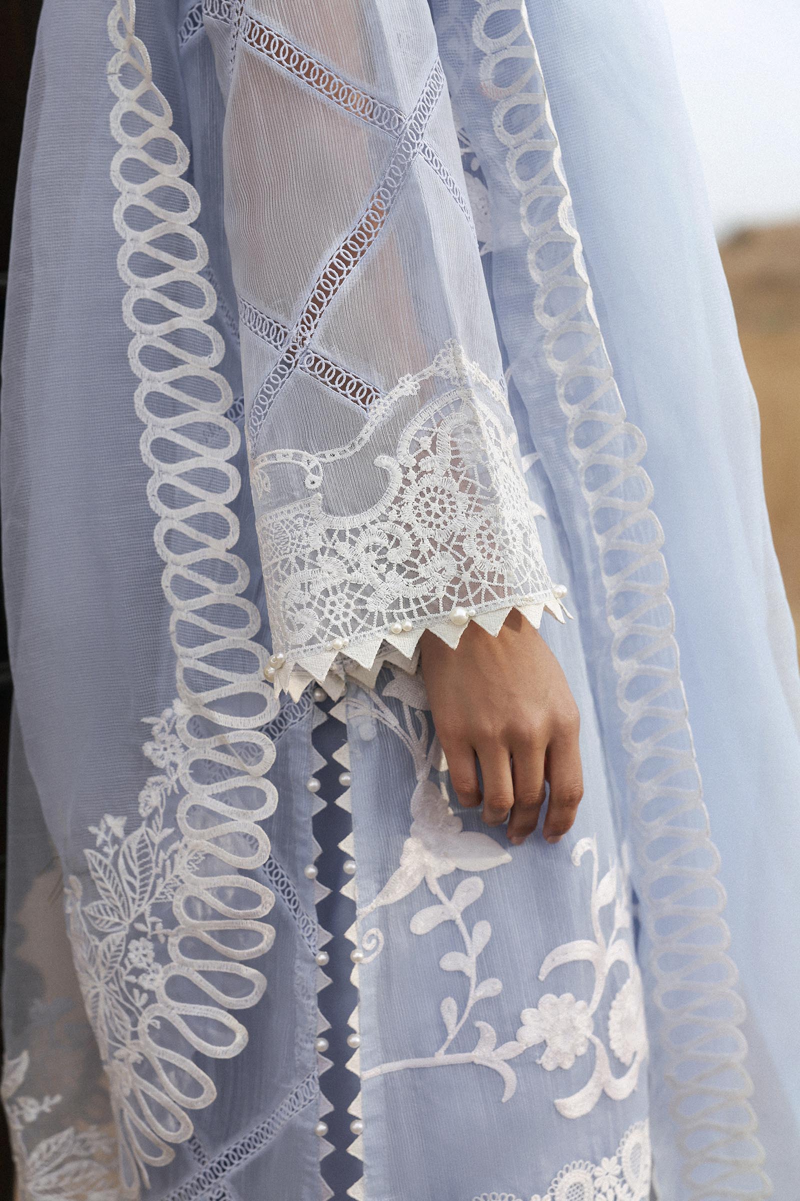 | 04-Embroidered Sleeves Border On Organza | |